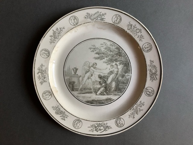 シミや淵にやや目立つ欠けなどもございますが、モチーフの面白さを楽しんでいただければ幸いです。
