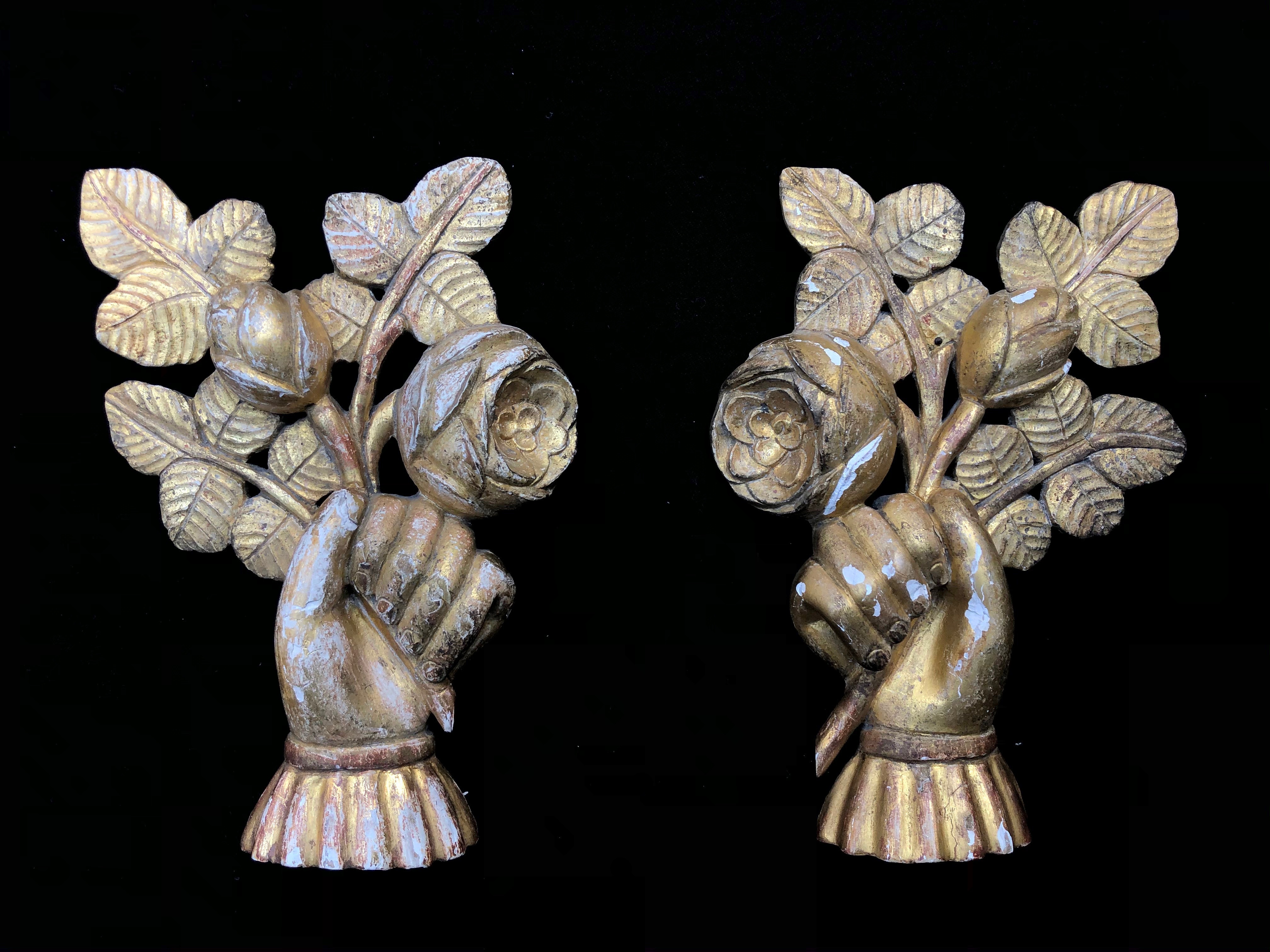 木彫に金彩が施されており、壁面や家具の装飾の一部であったかと思われます。