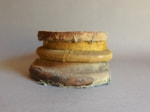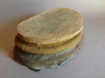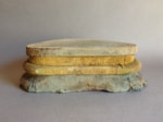最上段と最下段はグレー味を帯びたブルー、中断は黄緑色に分かれており、経年の変化による色褪せがより一層味わい深い雰囲気を漂わせております。