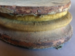 内側に煤がびっしりとついており、ご覧の通りブリキの外装は元の黒い塗装は殆どはげており、サビございます。