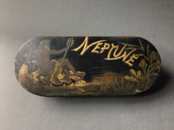 星をかたどったモチーフやエキゾチックな人物などが描かれたものが知られておりますが、このような神話のモチーフで尚且つオーヴァル型の蓋つきの箱というのは初見で、このタイプのアイテムではレアなものでしょう。