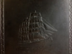 蓋の表面には3本のマストを掲げる帆船が描かれており、型取りではございますが、帆船のディテールや波の一つ一つが細部まで丁寧に表現されております。