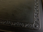 よく見ると下書きの線が残されていたり、模様が完璧に対照ではない箇所もあるため、工業製品としてではなく、個人の手による私的な作品であることは間違いなく、細部までこだわった丁寧な作りやデザイン製など、稀に見る素晴らしい作品といえます。